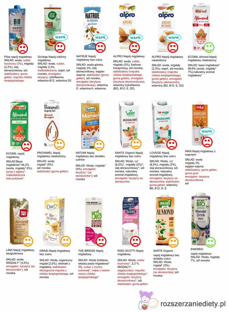 • Mleko migdałowe – niskokaloryczne, bogate w witaminę E, dobry wybór dla dzieci.
